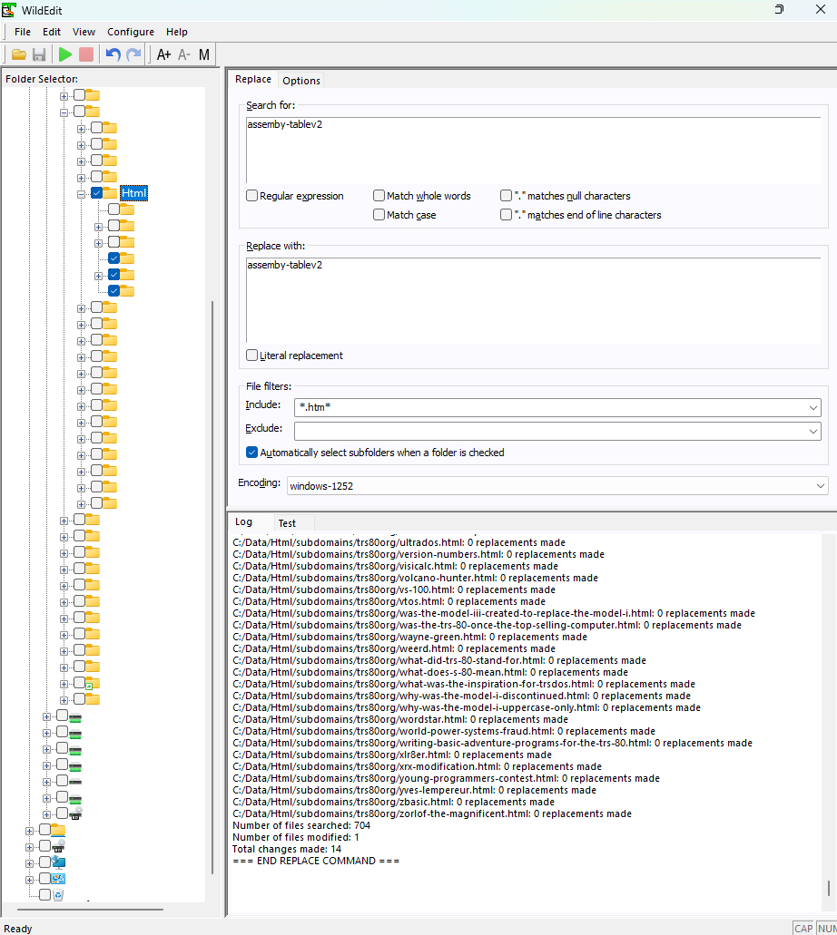 Once that page (or pages) are done, I use WildEdit to search the entire tree for the class.
