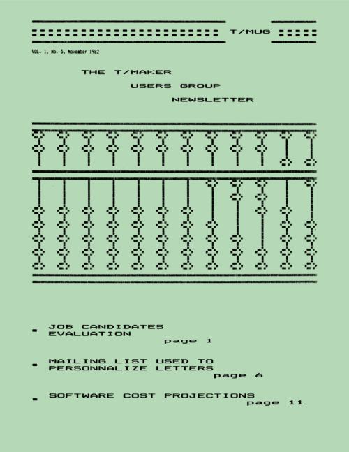 T/Maker Users' Group Newsletter - Volume 1, Issue 5 - November 1982