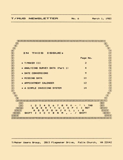 T/Maker Users' Group Newsletter - Volume 1, Issue 6 - March 1983