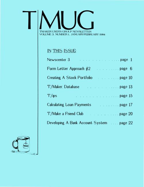 T/Maker Users' Group Newsletter - Volume 3, Issue 1 - January/February 1984