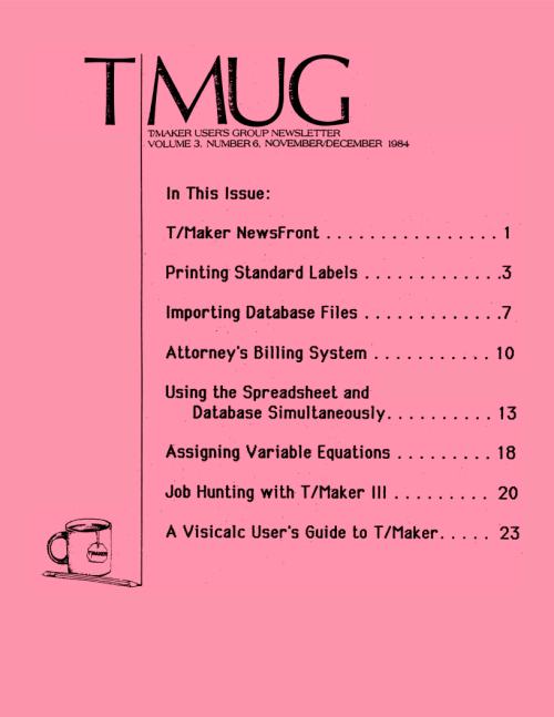 T/Maker Users' Group Newsletter - Volume 3, Issue 6 - November/December 1984