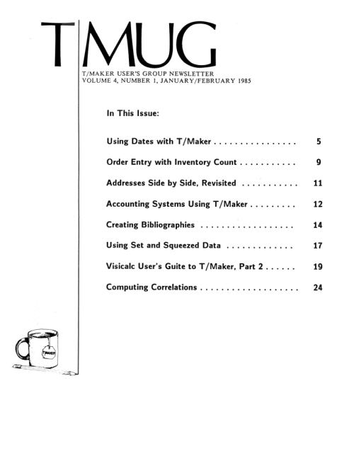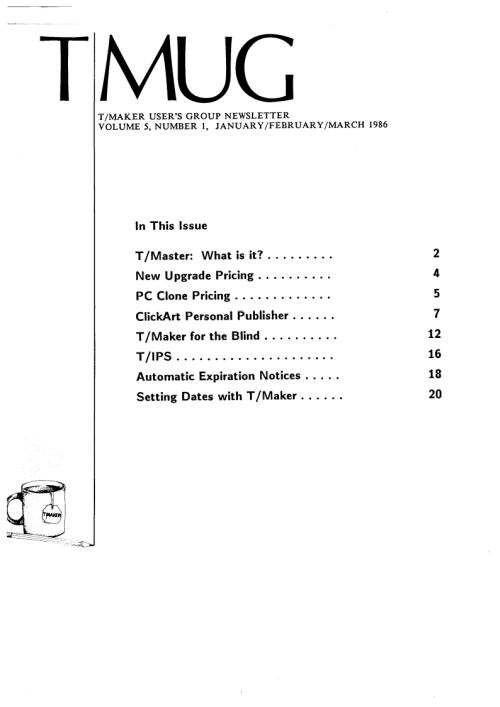 T/Maker Users' Group Newsletter - Volume 5, Issue 1 - January/February/March 1986