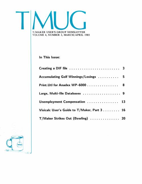T/Maker Users' Group Newsletter - Volume 4, Issue 2 - March/April 1985