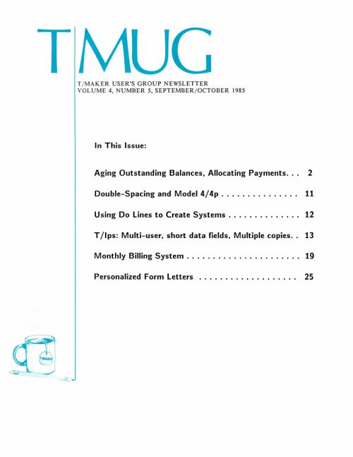 T/Maker Users' Group Newsletter - Volume 4, Issue 5 - September/October 1985