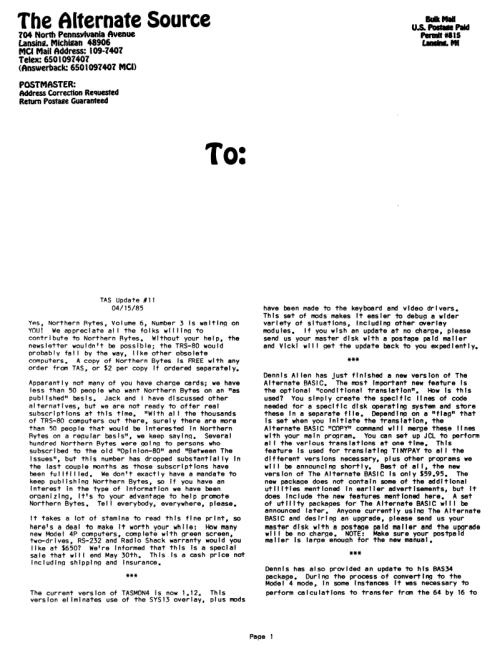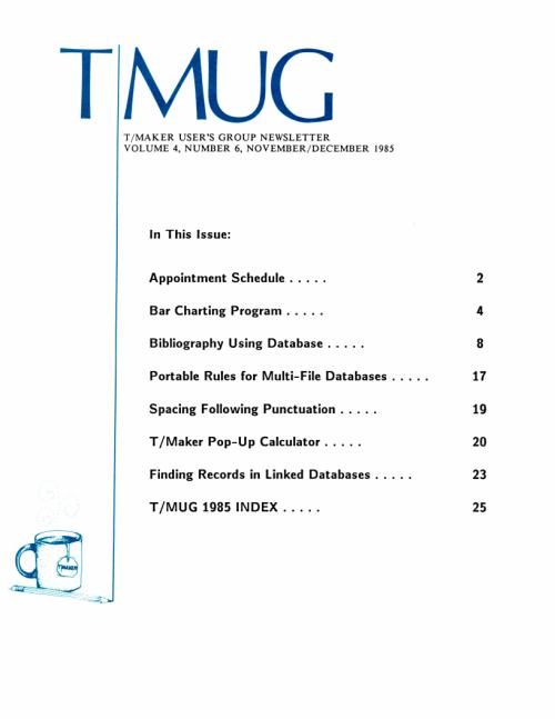T/Maker Users' Group Newsletter - Volume 4, Issue 6 - November/December 1985