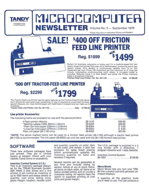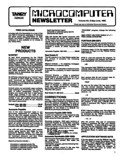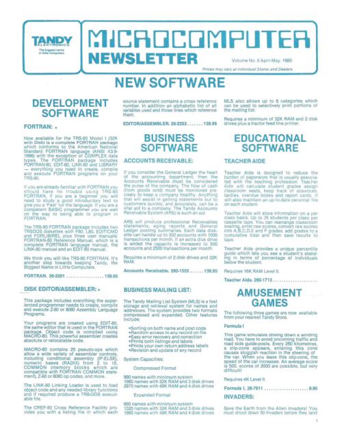 Issue: Vol 01 Issue 09Publisher: Tandy ElectronicsYear: 1980Size: 914,205Pages: 4OCRed: YesDate: 1980-05/06Issue Details: HereDownload: here