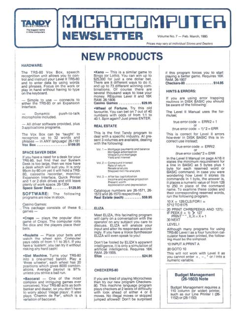 Issue: Vol 01 Issue 07Publisher: Tandy ElectronicsYear: 1980Size: 898,618Pages: 2OCRed: YesDate: 1980-02/03Issue Details: HereDownload: here