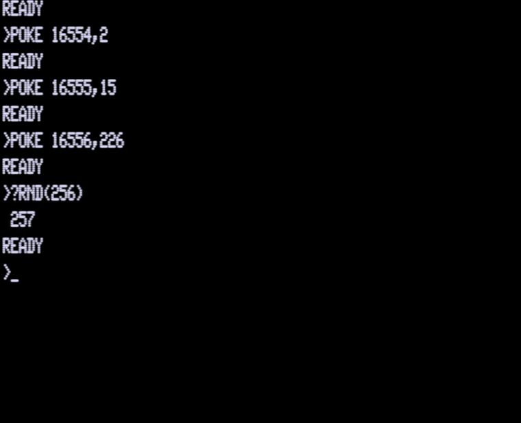 EXPECTATION: RND(n) where n is an integer from 1 to 32767, returns an integer from 1 to n. However, when n is a power of two raised to a positive integer exponent from 0 to 14 sometimes returns n+1. To get there quickly: