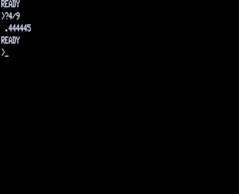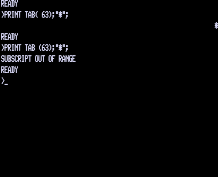 RULE: When BASIC prints an unformatted number, BASIC prints a leading space if the number is positive or a leading negative sign if the number is negative and a trailing space; and keeps the number on one video (or line printer) line. However, in the 32 and/or 40 characters per line mode, the 'keep it on one video line' rule is violated. e.g.,