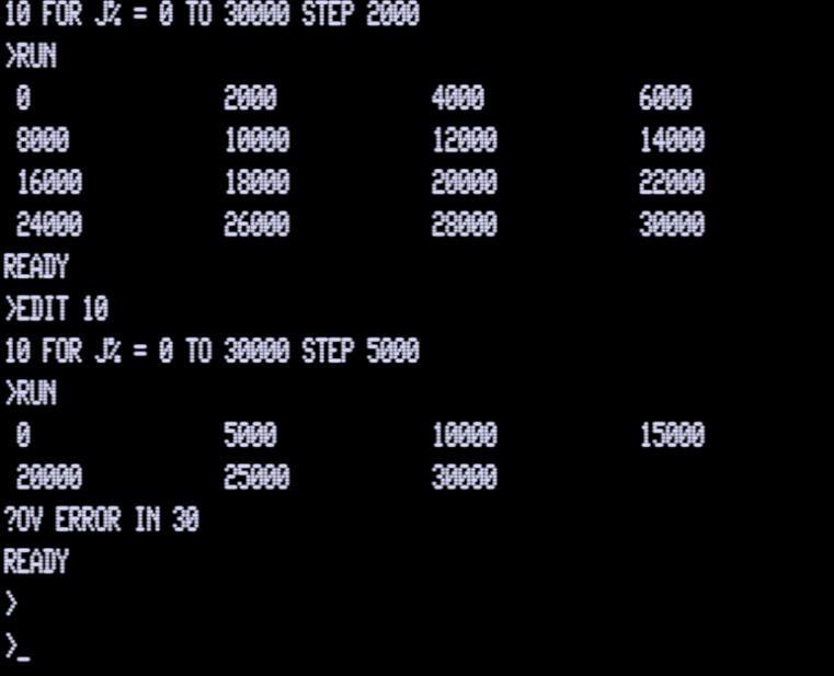 EXPECTATION: FOR-NEXT loops with valid integer values should complete. e.g.,