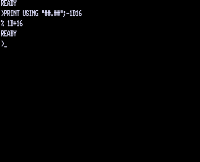EXPECTATION: PRINT USING without scientific specifier should display a negative sign if the value is <-9.999999999999999D+15. e.g.,