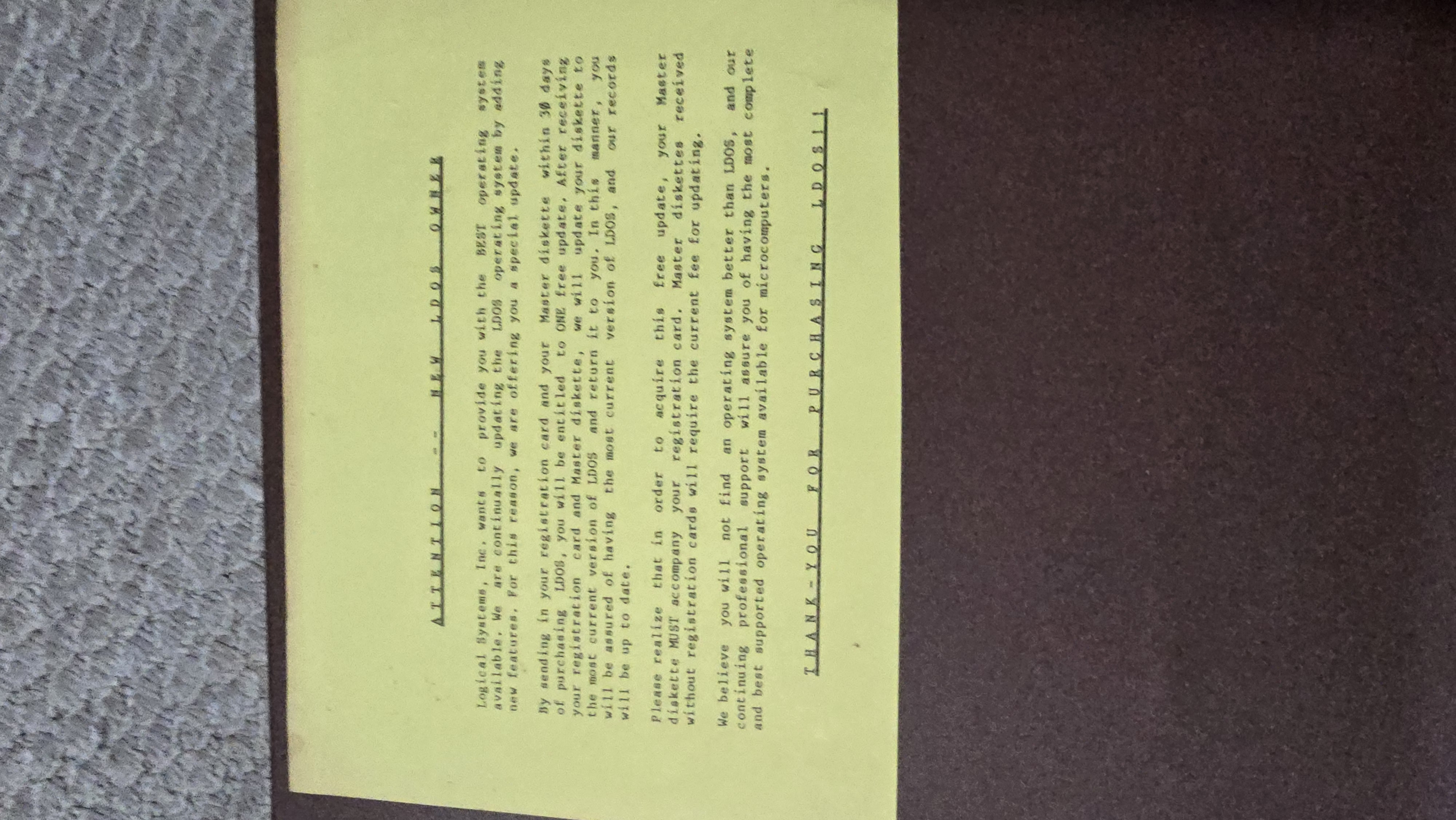 So that it doesn't get lost in all the re-listings, one of the items I have up on eBay is for LDOS v5.1.3 for Model III (Original Binder/Manual/Software).