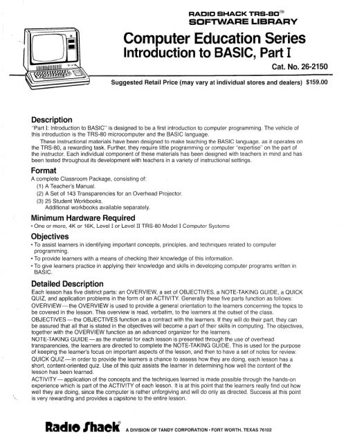 | TRS-80 Software - Level II BASIC Instruction Course - Parts 1 and 2 (Original) | Auction 177823175166 |