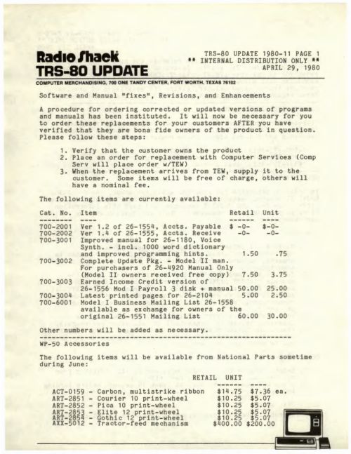 A site visitor (and very frequent contributor) has multiple Model I components that he would like to give away by local pickup only in the Norfolk, Nebraska area.