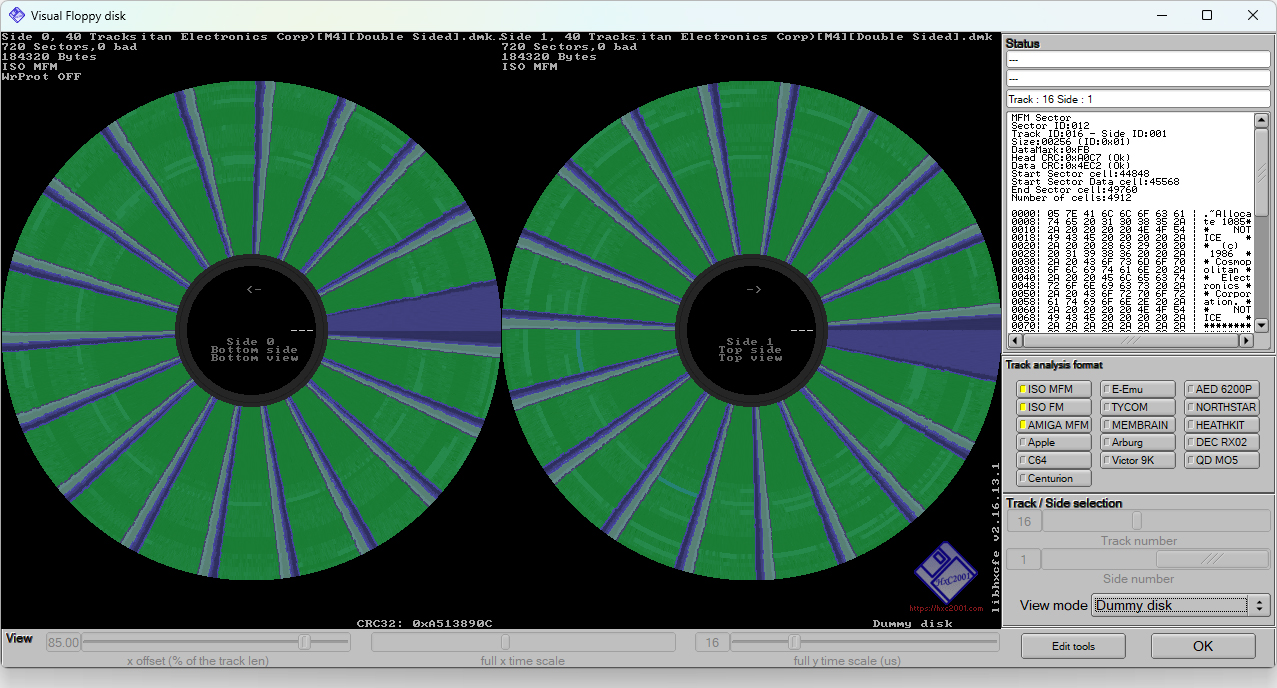 As a side note, the Track Analyzer has a feature which allows you to "swap sides" and erase sides. This was especially useful for disks which were written using certain software which mounted a double sided drive as two different drive numbers. It took a lot of people a lot of time to try to figure out what was going on with those disks, and once it was determined what was happening, it was this software that allowed extraction of the second side as its own DMK image!