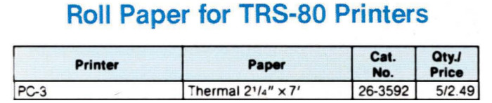 Cash register-type paper for PC-2 plotter/printer. 2-1/4" wide. 6 Rolls.