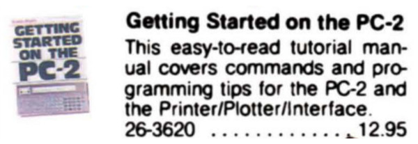 This easy-to-read tutorial manual covers commands and programming tips for the PC-2 and the Plotter/Printer/Interface.