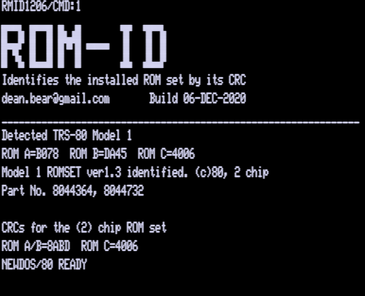 Dean Bear has been kind enough to do one more update his ROM-ID Utility for the Model I, III, and 4 (Model 4 in Model III Mode)