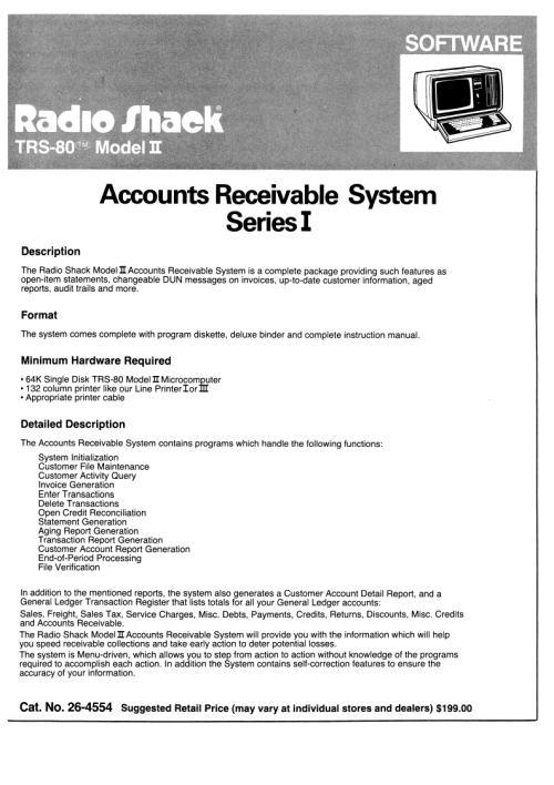 Title: TRS-80 Model II Software Library - Accounts Receivable System Series I