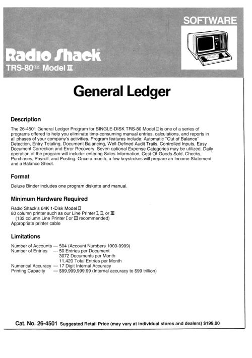 Title: TRS-80 Model II Software Library - General Ledger