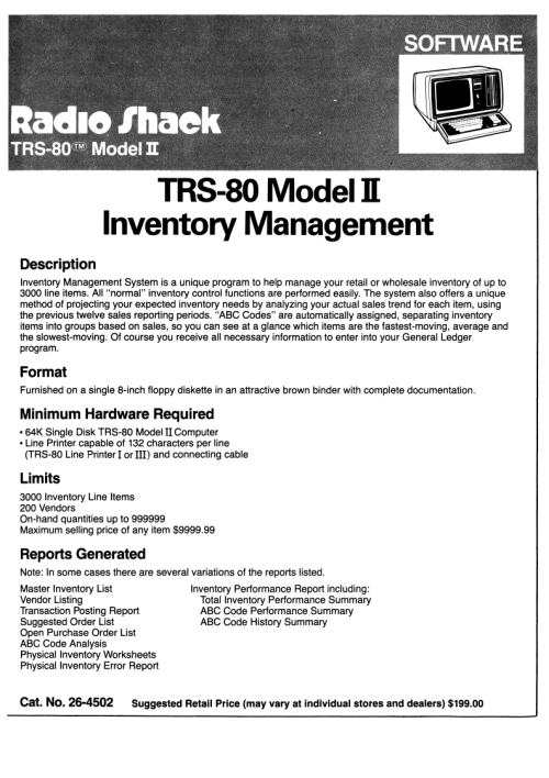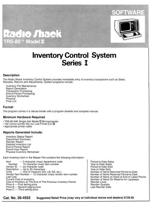 Title: TRS-80 Model II Software Library - Inventory Control System Series I