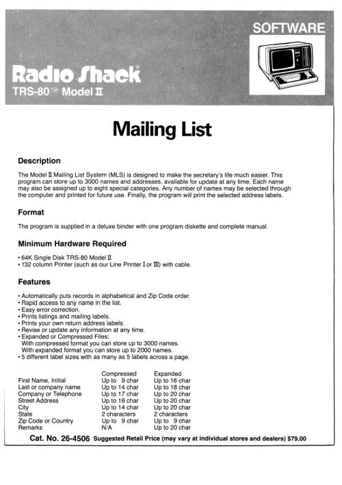 Title: TRS-80 Model I Software Library - Business Mailing List [26-1558]