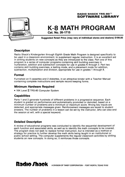 Title: TRS-80 Model I Software Library - K-8 Math Program [26-1715]