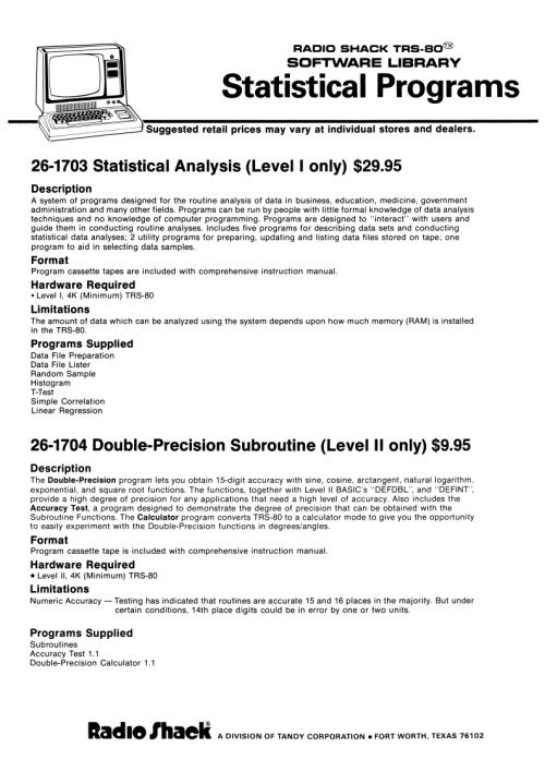 Title: TRS-80 Model I Software Library - Statistical Programs 26-1703 [26-1704]