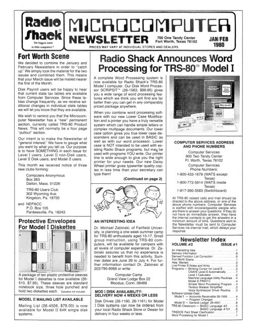 TRS-80 Microcomputer News - Volume 1, Issue 1