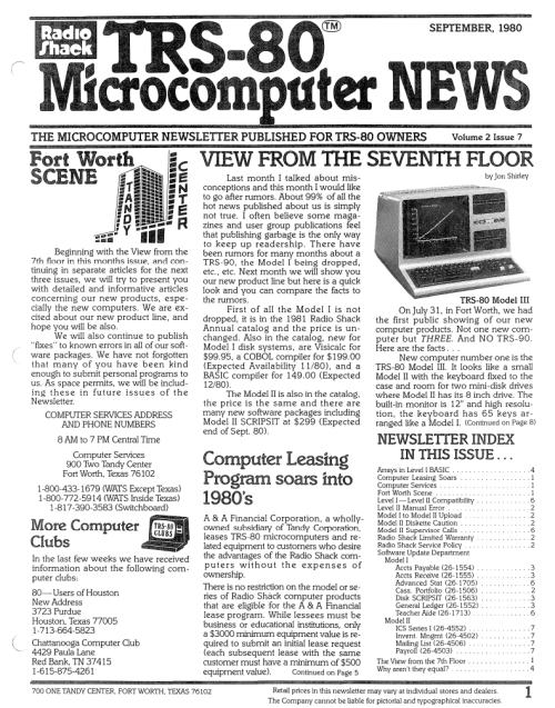 We are happy to recommend the magazines listed below. Forthcoming issues of these magazines will keep you informed of new products, practical applications and useful information about our TRS-80 line of computers and software. There will be no additional cost to you.