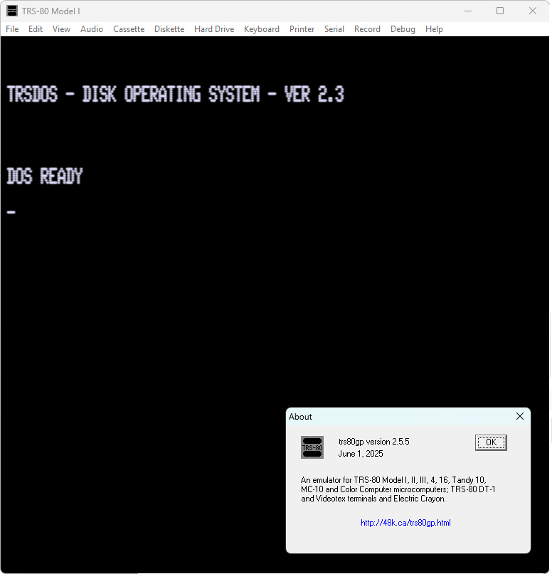 trs80gp primarily emulates the "gray" line of TRS-80 computers made by Tandy in the late 1970s and early 1980s. They are known as the Model I, Model II, Model III, Model 4, Model 4P, Model 4D, Model 12, Model 16 and Model 6000. It is generally easier to use ordinary digits for the Model 1, Model 2 and Model 3. The Model 1, 3 and 4 are a line of compatible computers as is the Model 2, 12, 16 and 6000.