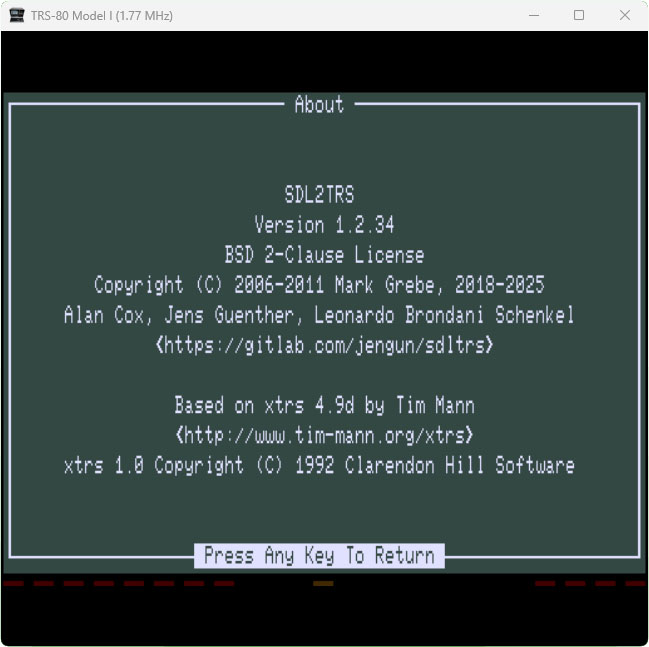| Feature | TRS80GP | SDLTRS 2 | TRS32 |