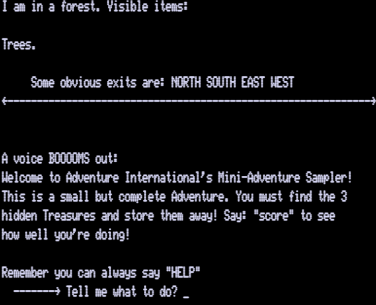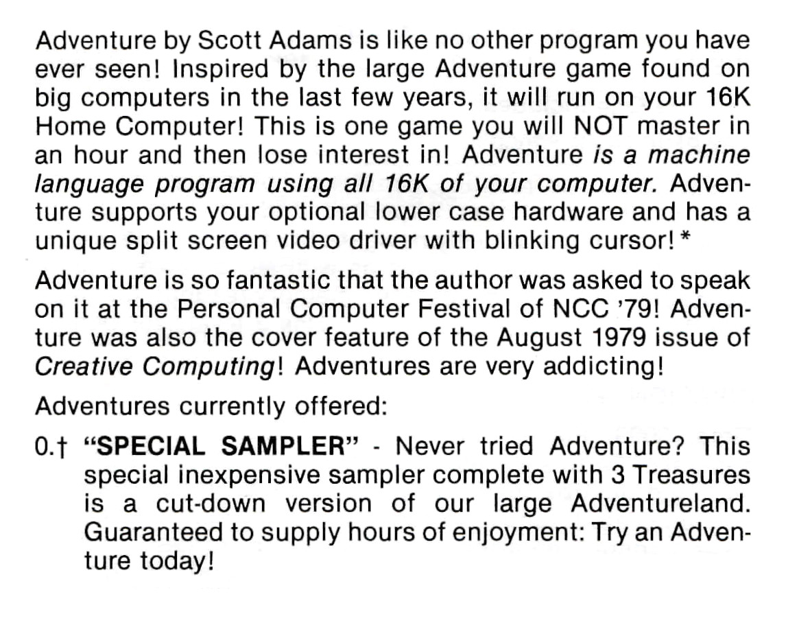 Adams Adventure 00: Mini-Sampler v1.01 [Set 4] | 1 | CMD | Scott Adams / Adventure International | 1979 | En | 010-0000 | sa00101c |     |