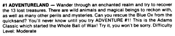 Adams Adventure 01: Adventureland | 4 | BAS | Scott Adams / Adventure International | 1979 | En | 010-0001 | sa1basm4 |     |