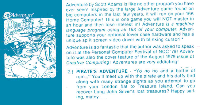 Adams Adventure 02: Pirates Adventure v4.08 [Tape Version][Loader v7.7] | 1 | CMD | Scott Adams / Adventure International | 1979 | En | 010-0002 | sa2408c1 |     |