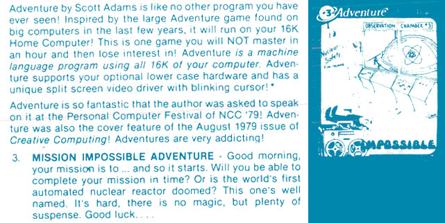 Adams Adventure 03: Mission Impossible v3.06 | 1 | CMD | Scott Adams / Adventure International | 1979 | En | 010-0003 | sa3306m1 |     |