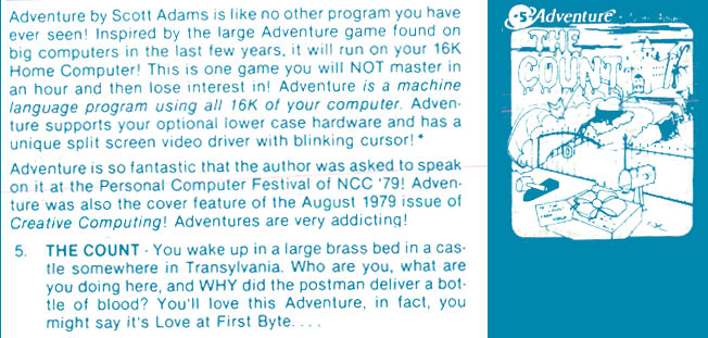 Adams Adventure 05: The Count v1.11 [Disk Version] | 1 | DAT | Scott Adams / Adventure International | 1981 | En | 010-0005 | sa5111d1 |     |