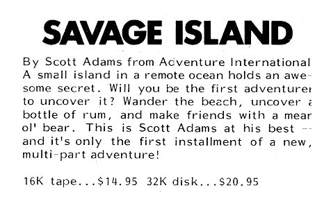 Adams Adventure 10: Savage Island I v1.23 [Disk Version] | 1 | DAT | Scott Adams / Adventure International | 1981 | En | 010-0098 | saa123d1 |     |