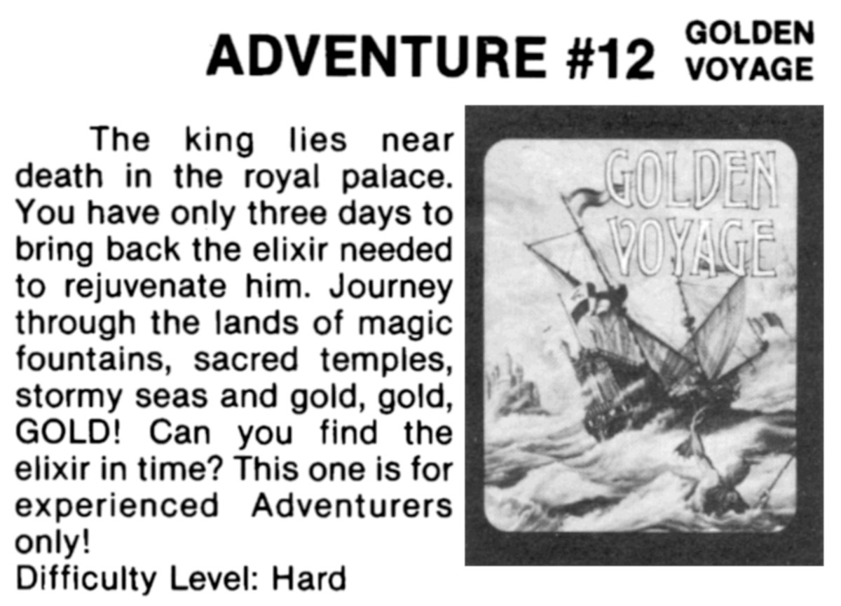 Adams Adventure 12: Golden Voyage v1.80 [Tape Version] | 3 | CAS | Scott Adams / Adventure International | 1981 | En | 010-0129 | sac180c3 |    |