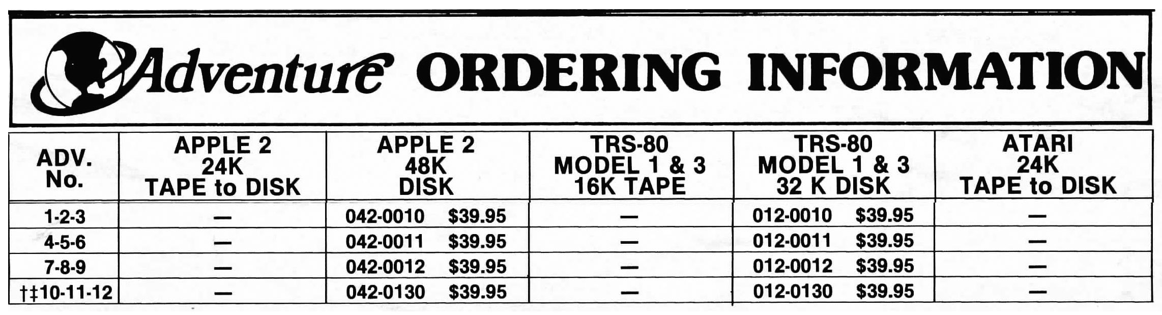 Adams Adventures 10-11-12 [Original] | 1 | DMK | Scott Adams / Adventure International | 1980 | En | 012-0130 | sa1012do |   |