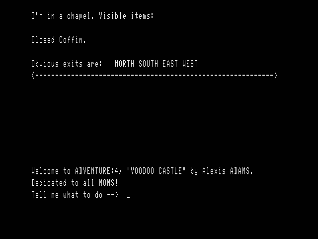 Adams Adventure 04: Voodoo Castle v1.18 | 3 | CMD | Scott Adams / Adventure International | 1980 | En | 010-0004 | saco4118 |     |