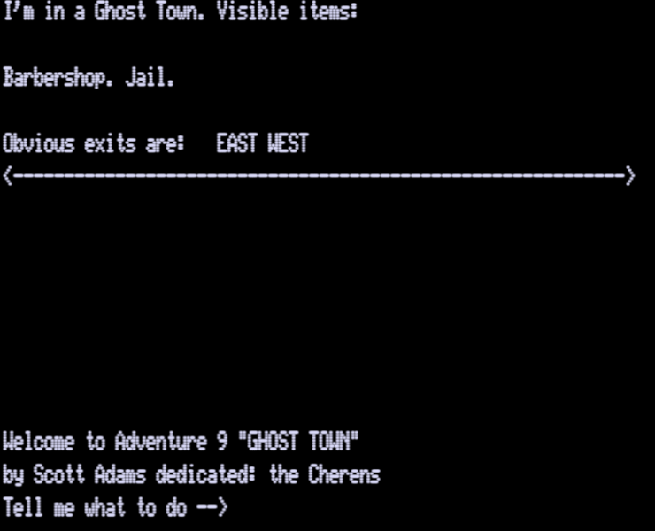 Adams Adventure 09: Ghost Town v1.23 | 3 | CMD | Scott Adams / Adventure International | 1981 | En | 010-0009 | sac09123 |     |