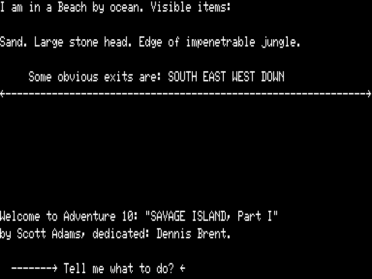 Adams Adventure 10: Savage Island I v1.23 [Exec 8.3][Original] | 1 | DMK | Scott Adams / Adventure International | 1979 | En | 010-0098 | saa123n1 |     |