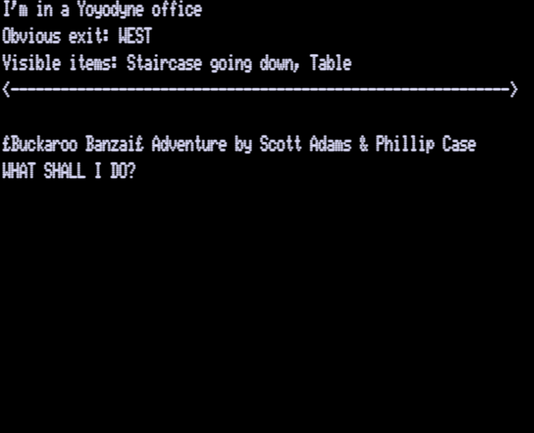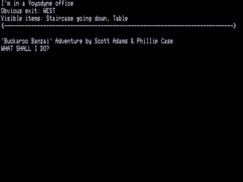 Adams Adventure 41: Buckaroo Bonzai Adventure [Sijnstra Executor v17] | 4 | CMD | Scott Adams | 1985 | En | | sa41buck |  |