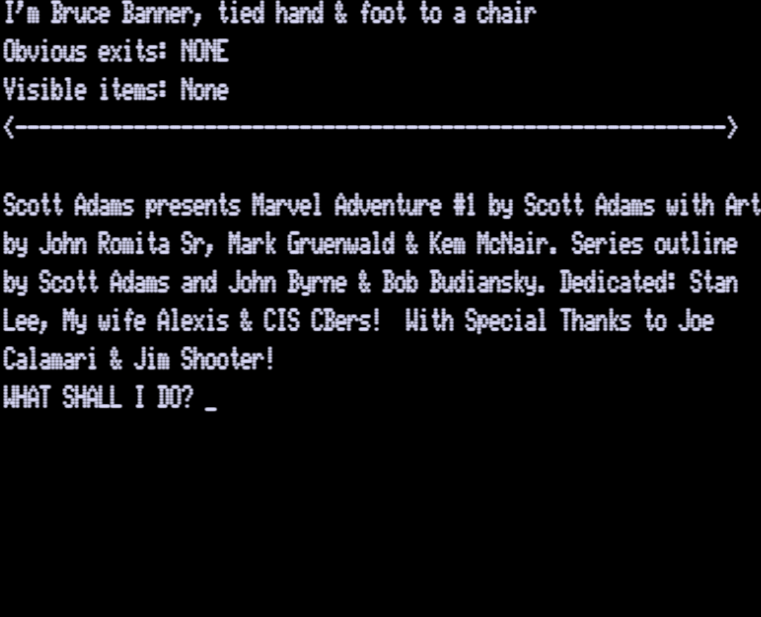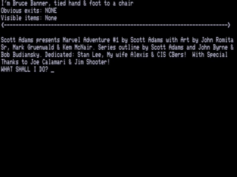 Adams Adventure 51: Questprobe I: Hulk v1.27 [Sijnstra Executor v17] | 4 | CMD | Scott Adams | 1984 | En | | sa51v127 |  |