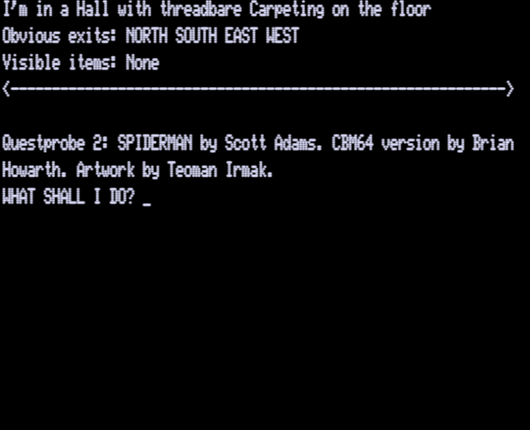 Adams Adventure 52: Questprobe II: Spiderman [Sijnstra Executor v17] | 4 | CMD | Scott Adams | 1984 | En | | sa52spid |  |