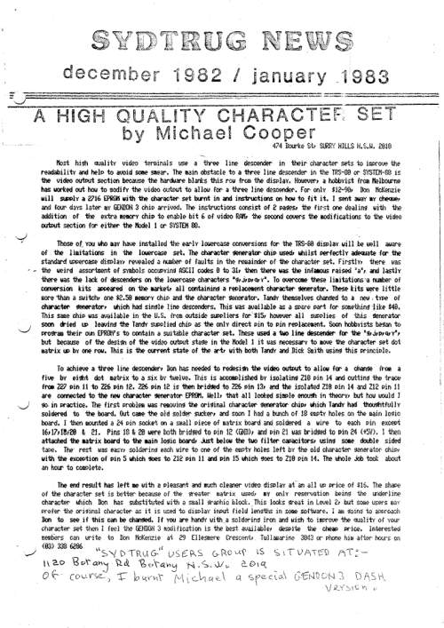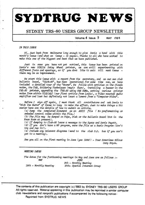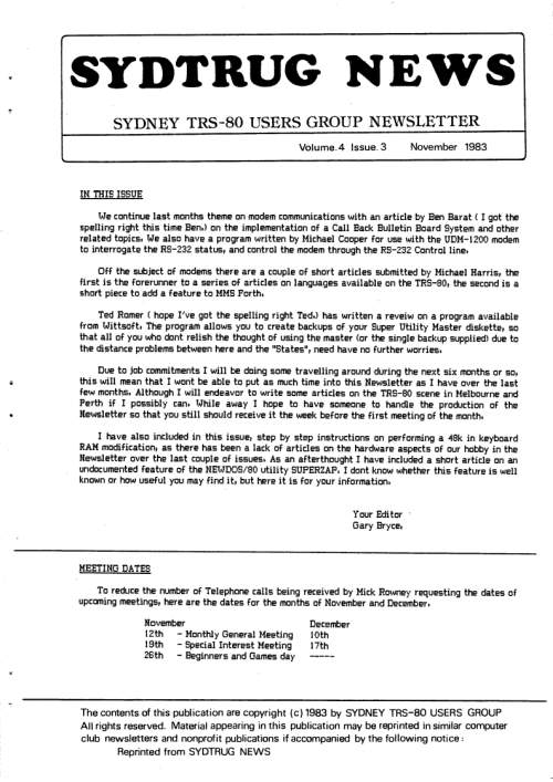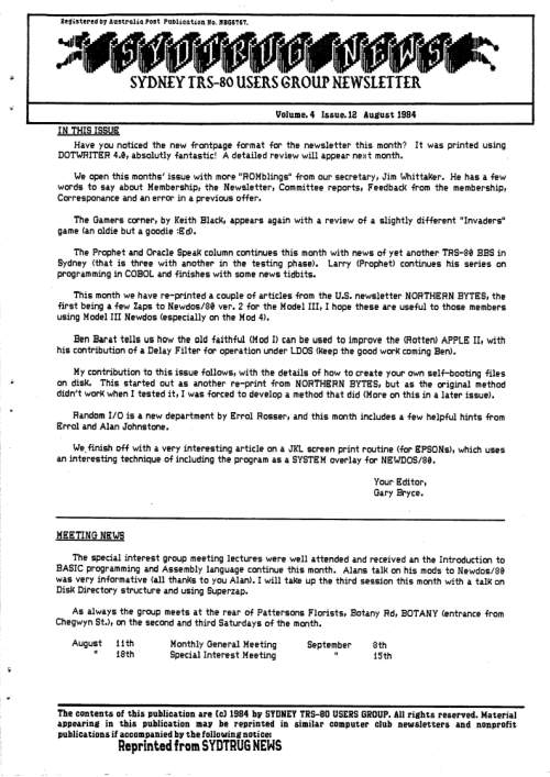 - George Hines, creator of the Floppy Remapper, announced his latest project, a Model I which uses a EEPROM Header Mod to permit switching between Level I and Level II.