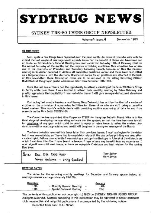 Dusty has released the December 2023 issue of the TRS8Bit newsletter. Here’s what he had to say: