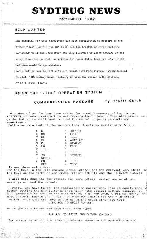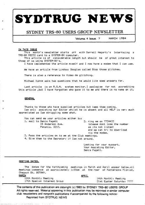 Announcements and inquiries from TRS-80 Trash Talk Live # 11: