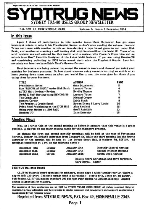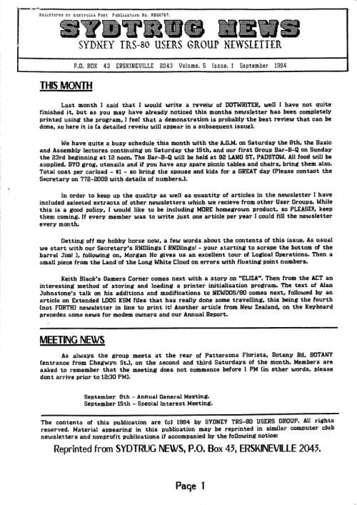 - Dusty mentioned that articles for the March issue of TRS8BIT are needed by end of February.